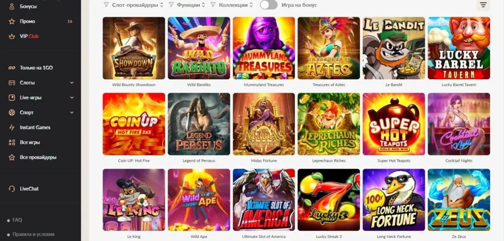 5000+ игр — впечатляющая цифра, но профессионалы смотрят глубже. В 1GO Casino собраны слоты от топ-10 провайдеров индустрии: NetEnt, Microgaming, Playtech, Evolution Gaming и других. Это гарантирует качество графики, честность RNG и стабильность работы. Особенно выделяются джекпот-слоты от Microgaming с призовыми фондами до 10 миллионов евро, а также эксклюзивные игры от Evolution Gaming в разделе live-казино.