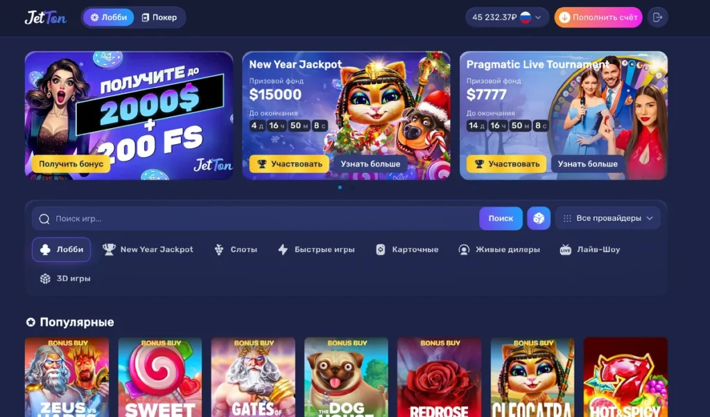 Когда речь заходит о выборе игровой площадки, многие ищут место, где можно не только развлечься, но и получить честные условия. Jet Casino появилось на рынке относительно недавно, но уже успело собрать вокруг себя активное комьюнити. Платформа ориентирована на игроков из стран СНГ, что заметно по интерфейсу, способам оплаты и поддержке на русском языке.