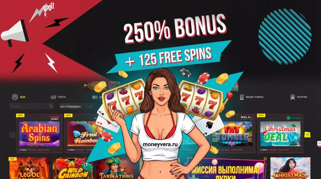 - Бонус: 225% + 125 фриспинов на первый депозит (промокод CASINORU)
